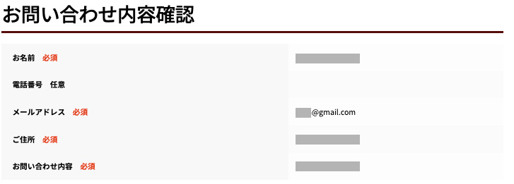 こちらのタグを組み合わせて、お問合せフォームを作成します。例として下記のように入力した場合と、HPで表示される場合の画像を掲載しているので、参考にしてみてください。