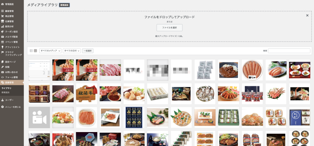 ここではサイトで使用した「画像」「動画」「音声ファイル」などのメディアを管理します。