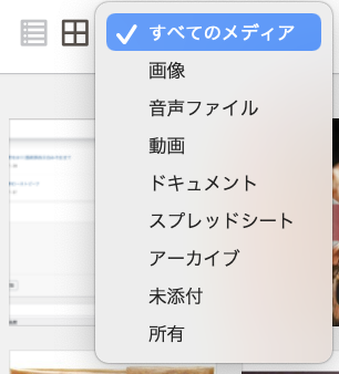 画像管理>メディアライブラリをクリックすると上記の様なタブが表示されます。