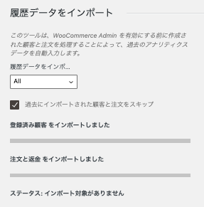 有効にする前に作成された顧客と注文を処理することによって、過去のアナリティクスデータを自動入力します。